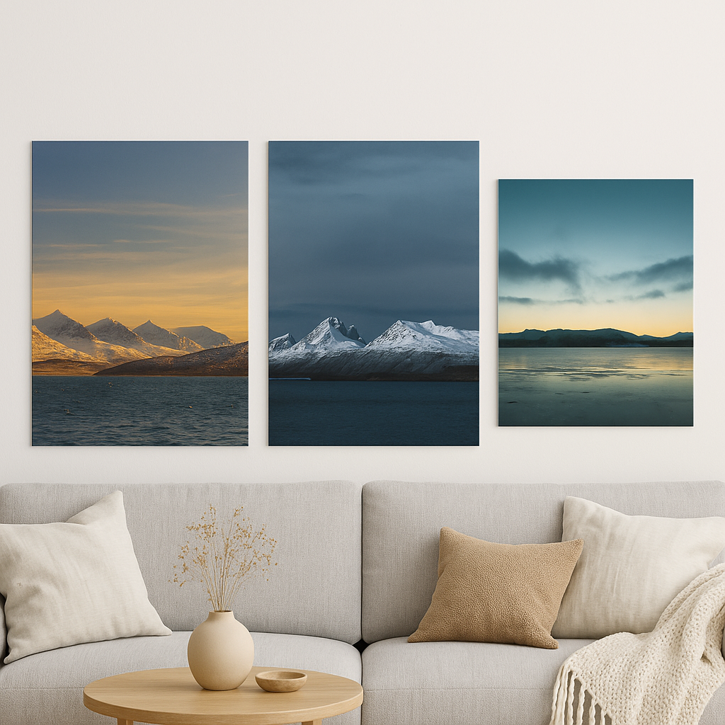 Hos Fotofryd får du veggbilder i små opplag, håndplukket av fotografen. Ikke masseprodusert, men valgt med omtanke. Kvalitet du kjenner. Vi trykker på materialer som tåler livet i stua. Fra eksklusivt fotopapir til lerret og aluplate. Alt for at motivet skal føles ekte. Skapt for hjemmet ditt. Bildene våre er laget for veggen din, ikke for feeden. Ryddig finish, rike detaljer og en ro du merker når du ser på det. Et snev av nord. Motiver som bringer lys, rom og nordnorsk stillhet inn i hverdagen. En liten bit av naturen, rett hjem til deg.