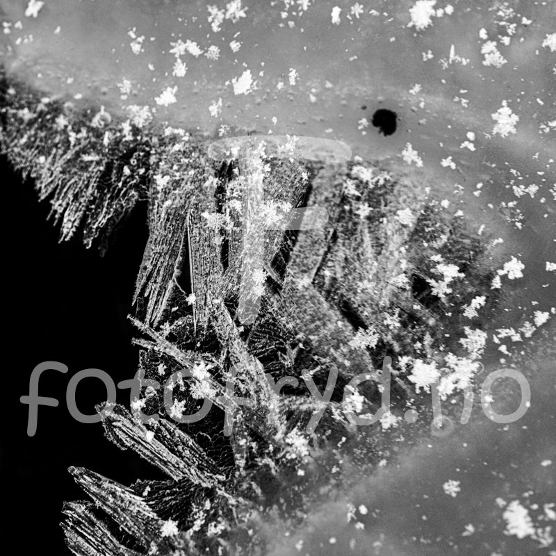 Dette eksklusive veggbildet fra Fotofryd fanger vinterens poesi på nært hold. De fine, geometriske iskrystallene trer frem i sterke svart-hvitt-kontraster og skaper en stemning som føles stille, presis og nesten meditativ. Som et øyeblikk frosset i tid.