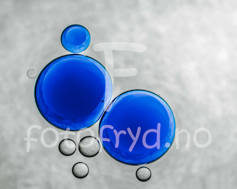 Moderne kunstplakat med blå bobler – stilren veggkunst til hjem og kontor